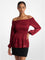 Michael Kors Women's Burgundy Smocked Moiré Jacquard Off-The-Shoulder Top