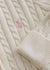 - Cable knit, round-neck, turn-up cuffs, embroidered designer crest, ribbed trims