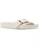 - Round-toe T-strap slingback sandals with adjustable buckle closure