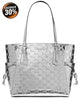 - 13-1/2"W x 11-1/2"H x 5"D (width is measured across the bottom of handbag); 2.00 lb. approx. weight