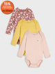 Sinsay Baby Girl's Green & Dusty Rose Flora Long Sleeve Bodysuit Set Of 3