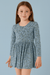 POMPdeLUX Girl's Printed Blue Organic Cotton Long-Sleeve Dress