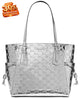 - 13-1/2"W x 11-1/2"H x 5"D (width is measured across the bottom of handbag); 2.00 lb. approx. weight