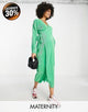 - 70s Drape Front Wrap Midi Dress In Green With Lilac Floral-multi