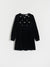 Reserved Girl's Black Velvet Rhinestone Long Sleeve Velour Dress
