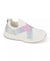 This casual sport stretch sneaker from DKNY features a criss cross elastic iridescent logo on a branded outsole.