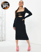 Asos Design shoulder pad plunge bodycon midi dresses with belt