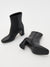 Reserved Women's Black Leather Asymmetrical Heel Ankle Boots