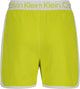 These lightweight denim shorts are playfully updated with allover distressing and repairs in seasonal motifs.