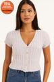 Forever 21 Women's Blue Crew Neck Short Sleeve Rhinestone Blouse