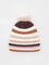 Striped hat with a decorative pompom, made of knitted fabric with the addition of wool.