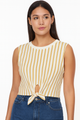 The top is a halter style with a keyhole cutout and tie-front detail, creating a slit in the front.