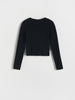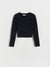 Reserved Girl's Black Striped Mixed Materials Sweater