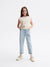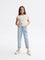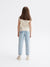 Reserved Girl's Light Blue Embroidered Floral Appliques Baggy Jeans