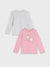 Sinsay Girl's Pink & Gray Long Sleeve Blouse  LENGTH: regular SLEEVES: long PATTERN: plain, print FEATURES: ruffles, multipack MATERIAL: cotton   classic cut round neck long sleeves decorative ruffles decorative print 2 pack Material I: 100% cotton Material II (internal):...