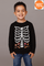 - Skeleton rib cage with candy graphic design at front glows in the dark