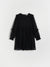 Reserved Girl's Black Patterned Dress Description A casual dress made of delicate fabric. round neckline teardrop button closure at the back lowered shoulder line long sleeves finished with elastic decorative ruffles on the shoulders decorative stitching at the waist pleated...