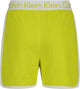 These lightweight denim shorts are playfully updated with allover distressing and repairs in seasonal motifs.