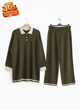 Elevate your loungewear and casual style with this perfectly coordinated two-piece knit set. Combining ultimate comfort with sophisticated details, this set features an oversized polo top and flattering wide-leg trousers, perfect for effortless, all-day wear.