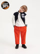 A long-sleeved T-shirt for boys is the perfect choice for any occasion. Made of soft cotton, it provides convenience and comfort of wearing. A semi-circular neckline with a ribbed and long, raglan sleeves add elegance to the whole. There is a decorative print on the front of the jersey, and the slits on the sides make the jersey very feminine. This cute model will work well in any outfit and will surely delight every boy.