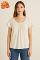 - Subtle wrap-style front that gathers at the hem, creating a draped effect
