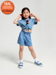 We present cotton dungarees with embroidery, perfect for boys! Adjustable straps and imitation side pockets ensure comfort during play, while the short, rolled-up legs add a touch of charm. Decorative embroidery on the front will make your little one look even more adorable!