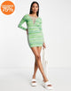 Asos Design long sleeved ruched bust corset mini dress in dark floral print.