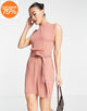 In The Style Women's Brown Sequin High Neck DressIn The Style Plus Exclusive sequin high neck 2-in-1 mini dress in rust