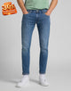 The fabric is a sustainable blend made using a high level of Lyocell and woven through with some stretch cotton for easy comfort and movement. The finish washes these classic black denims down to a dark grey with highlights through the thigh. Crease lines add extra depth. These are completed with matching stitching and darkened metal rivets and button.