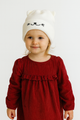 Terranova Girl's Light Grey BeanieKnitted BeanieEmbroidered Cat Lashes Cat Ears