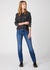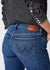 The Wrangler Wanderer Mixed Dahlia jeans feature a high waist, a fitted seat, a relaxed fit from thigh to knee, and a flared leg. These flared jeans have a vintage design and are a 5-pocket style with a zipper closure.