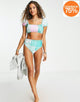 ASOS DESIGN high leg high waist bikini bottom in pink block floral print