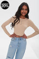 Forever 21 Women's Blue 1/4 Zip Ribbed Long Sleeve Blouse | Forever 21 – SuperDokan