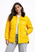 Calvin Klein Jeans Women's Yellow Buttoned Jacket A quilted jacket with cruelty-free padding that can be worn reversibly in vivid and dark tones. Boxy straight line and velvet collar in water-resistant technical taffeta. Thin quilting makes it perfect for outerwear...