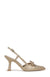 Elevate your formal wardrobe with these sophisticated Circus NY Monica pumps, crafted in lustrous gold to complement any occasion. The pointed-toe silhouette creates a refined, elongated line, while the slingback design ensures a secure, comfortable fit throughout the day. A delicate bow accent at the heel adds an unexpected touch of elegance and femininity. Perfect for weddings, galas, or upscale events, these heels deliver both style and wearability for the discerning woman.