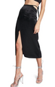 Petite Cotton Midi Skirt With Side Ruched Split In Khaki