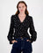 Celebrity Pink Women's Black V-Neck Printed Peplum Long Sleeve Top Blouses