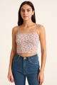 A black, short-sleeved crop top on a mannequin. The top features a prominent white lace-up detail down the front, with a deep V-neckline. The sleeves appear to be short and slightly ruffled at the shoulders.