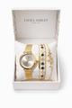 Laura Ashley Women's Gold 7 Pcs Glitter Bangles With Mesh Watch