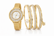 Laura Ashley Women's Gold 7 Pcs Glitter Bangles With Mesh Watch