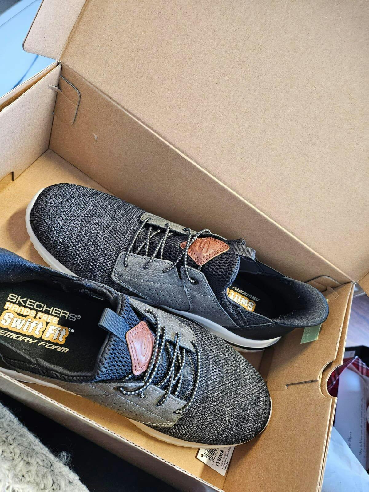 Simply step in and go wearing Skechers Hands Free Swift- Fit: Delson 3.0. This slip-on classic fit style features a lightweight mesh knit and smooth synthetic upper with stretch laces plus Skechers Memory Foam insole.
