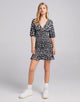 Cotton tiered midi dress with ruched sleeves and button back detail in ditsy floral print