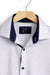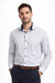 Society of Threads Men's White & Navy Doted Regular Fit Dress Shirt