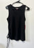 This black's Tank Top Is Crafted From A Soft Stretchy Jersey Fabric That Offers Comfort And Flexibility. It features a sleeveless design with classic round neckline & A stylish Drawstring detail on one side adds a trendy, adjustable rushing effect allowing you to customize the fit and length . Perfect for layering or wearing on its own for a casual everyday look.