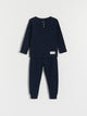 Embrace the spooky season with this expertly crafted Halloween pajama set from Sinsay. Designed specifically for boys, this black ensemble combines comfort with festive flair, featuring thematic Halloween graphics that capture the spirit of the holiday. The set includes a coordinated top and bottom, constructed from quality materials that ensure durability through countless wears and washes. Perfect for Halloween night festivities, costume parties, or cozy seasonal lounging, this pajama set delivers both style and practicality. An ideal choice for parents seeking age-appropriate sleepwear that celebrates the occasion while maintaining the comfort standards children need for restful sleep.