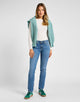 These Wrangler jeans offer a modern and comfortable slim fit through the leg in a versatile dark blue wash. They feature classic five-pocket styling with a zip fly, making them a perfect, timeless staple for any casual wardrobe.