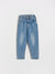 Reserved Girl's Dark Blue Classic Baggy Jeans Baggy jeans made of cotton fabric. high waist elastic waist Composition and care Material I : 100% COTTON MACHINE WASHABLE AT MAX. TEMP. 30° C - GENTLE PROCESS DO NOT BLEACH DO NOT TUMBLE DRY...