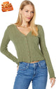 Ruffled three-quarter sleeves frame this day-to-date-night top designed in a shoulder-baring silhouette.