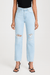 The Wild West jean is designed with a high-rise waist, fitted seat, straight leg from thigh to knee and a cropped ankle.