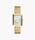 - A true icon from our archives, the rectangular Raquel watch is updated for the current moment. Slim and versatile, it features a mother-of-pearl watch face with a glitz inner-frame, three-hand date movement and a brushed and polished gold-tone 7-link bracelet.